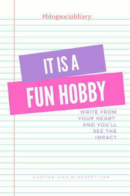 I will not make the hobby only like a hobby that I do in my spare time. I need to grow it up as I try to grow my level up in the company. I mean, my interest in writing should go higher as my carrier in the Finance/Administration section. Also, I don't mean to switch income from the previous one. But, if there is a way to do it, I will not deny it :). I cannot close the door for something would come to me in the future.